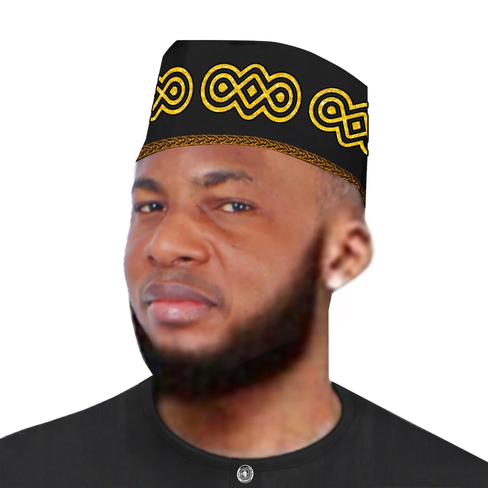 Buy 100% Cotton Solid Color Gold and silver Embroidered Caps African Kufi Hats Men’s African Inspired Fashions Ankara Cap WYB870