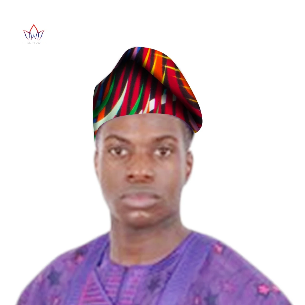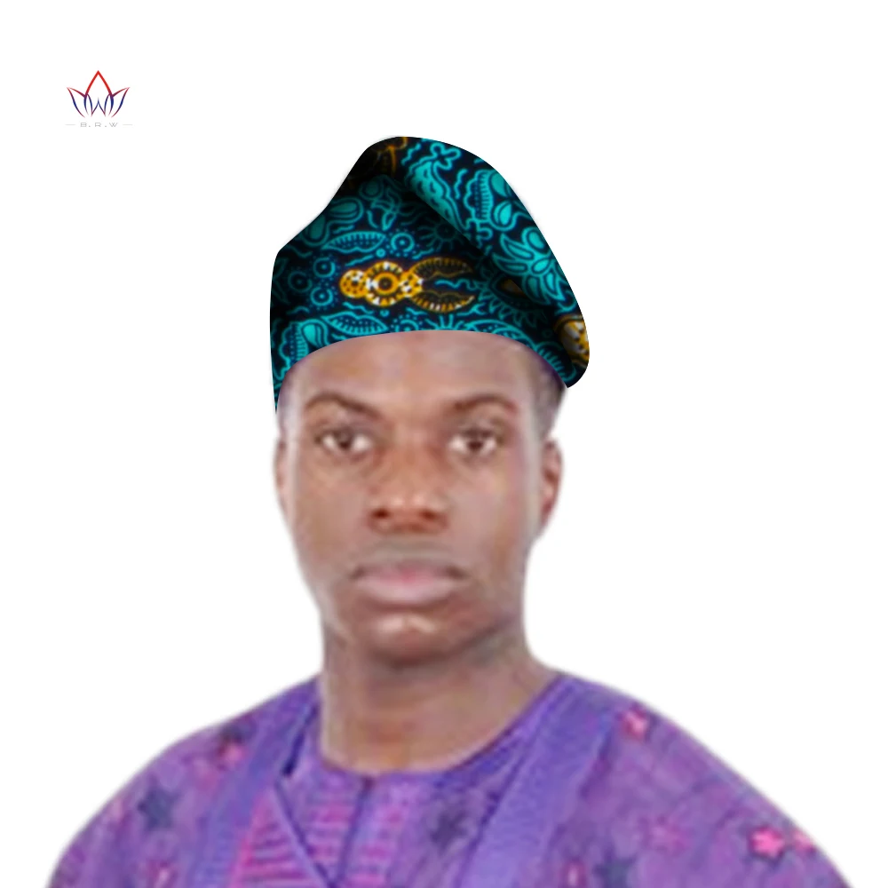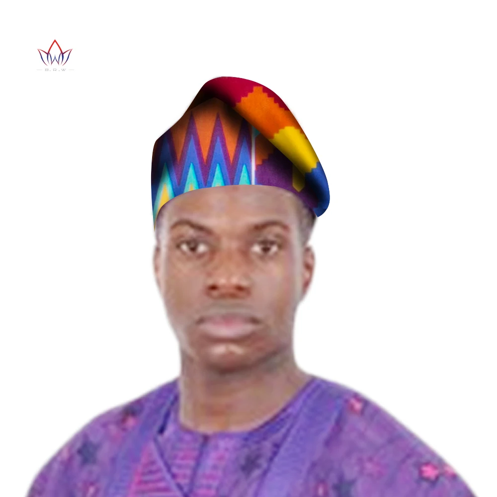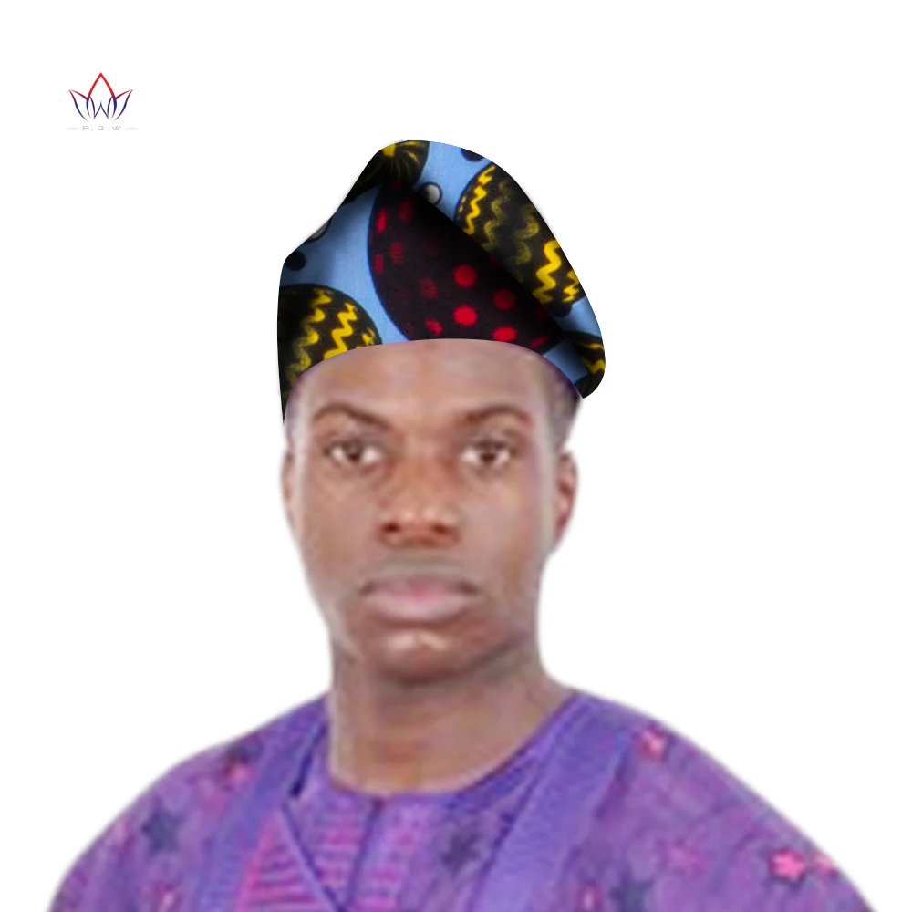African Men Traditional Cap Hat Bazin Riche Print Hat Wrap Hat Caps Casual Party Head Accessories wyb780