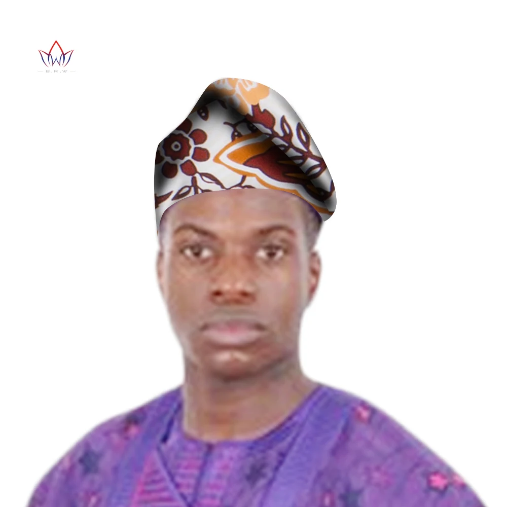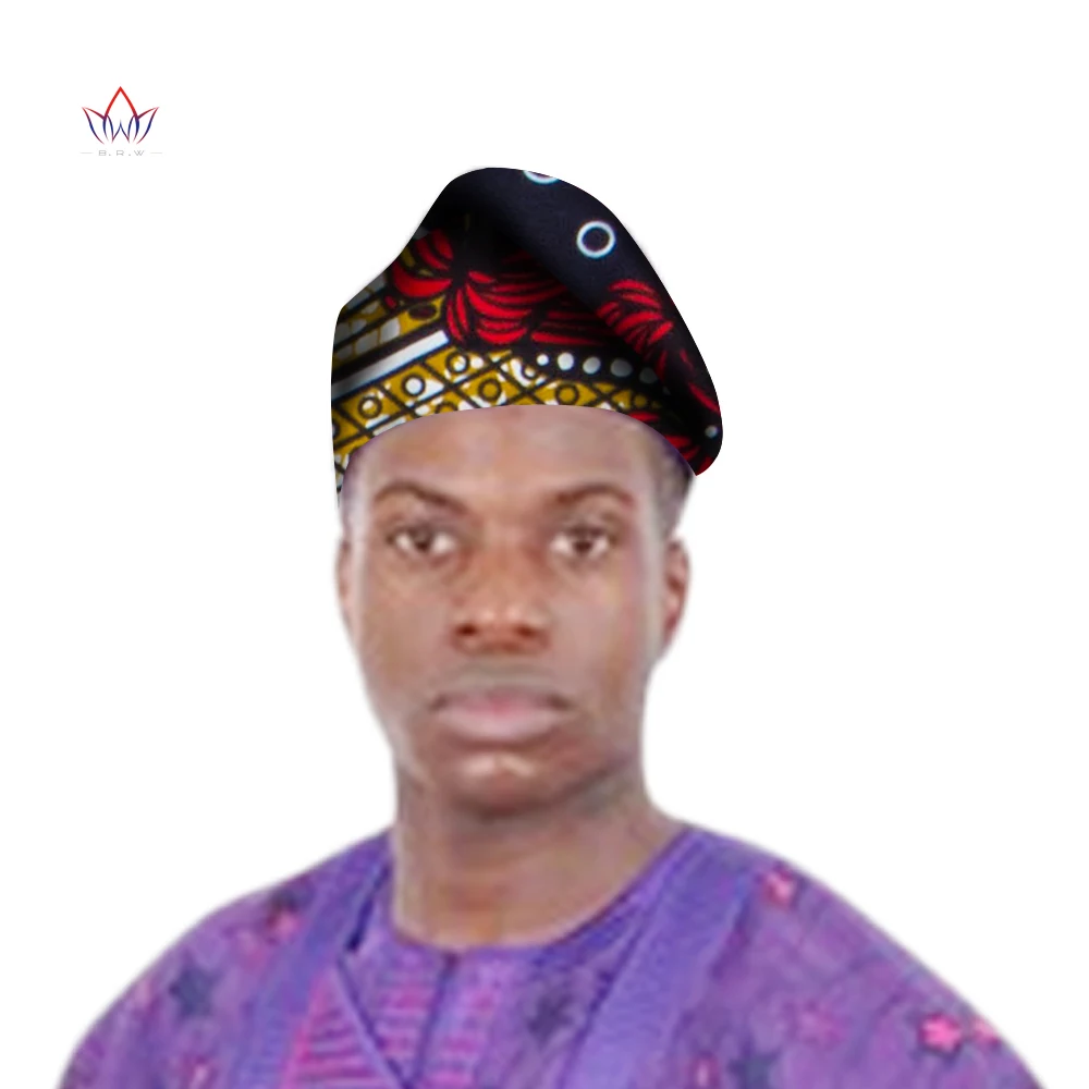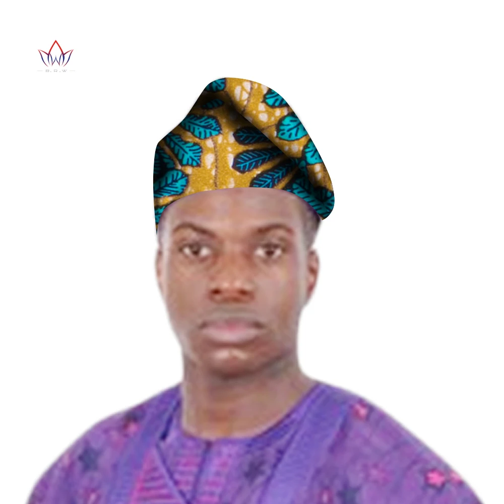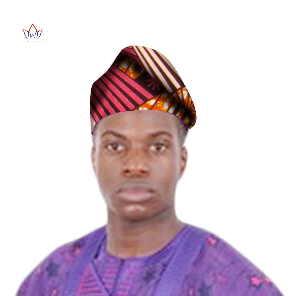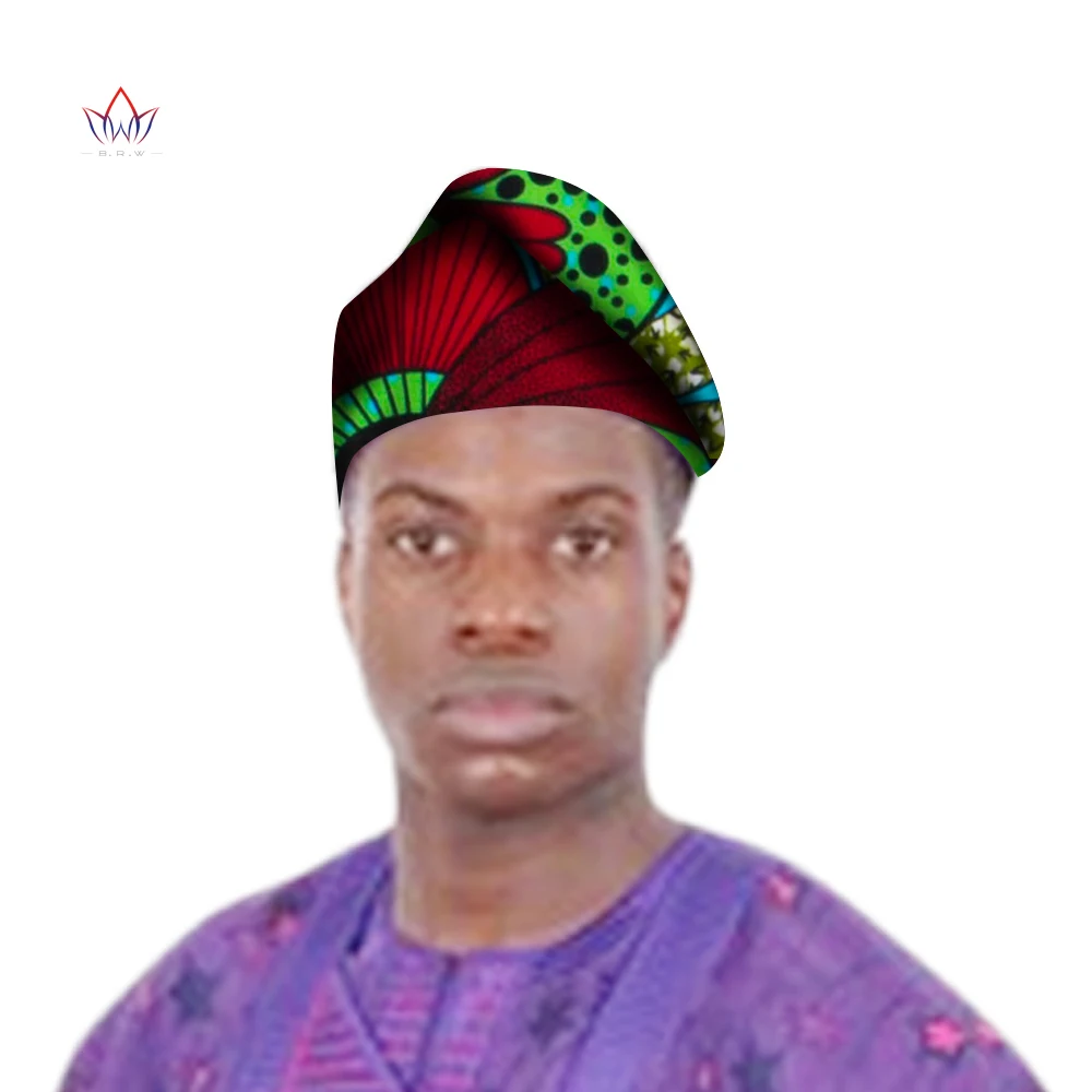 African Men Traditional Cap Hat Bazin Riche Print Hat Wrap Hat Caps Casual Party Head Accessories wyb780