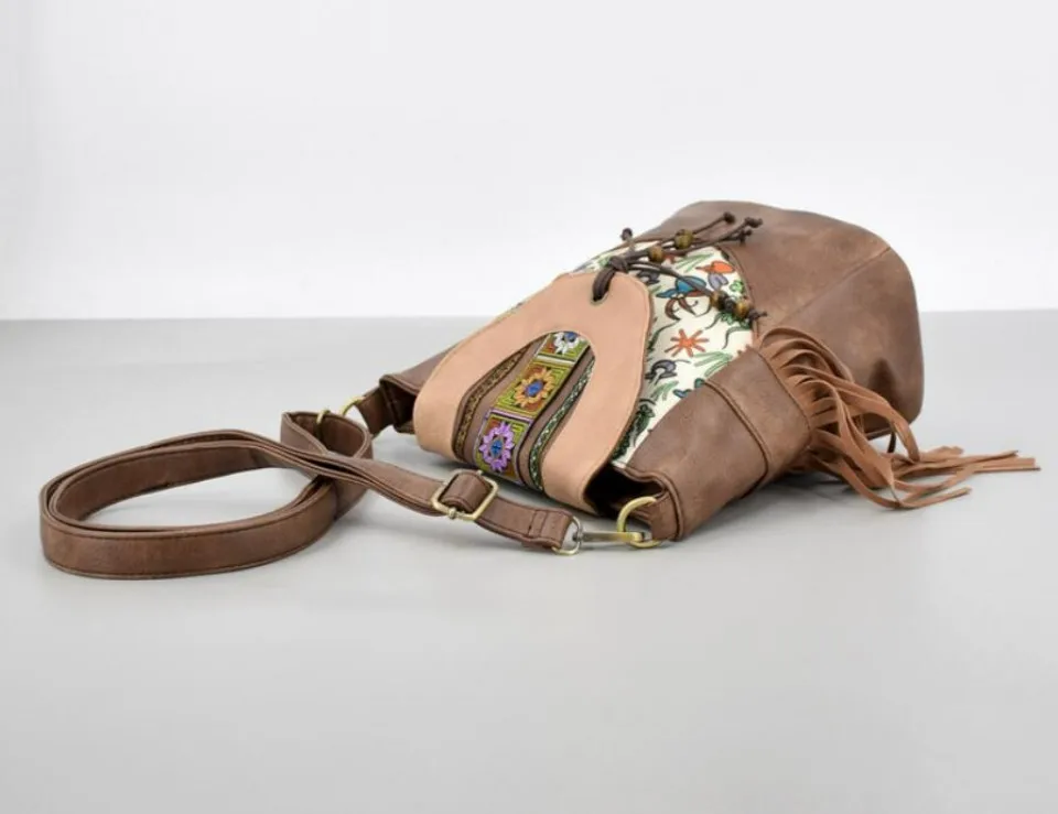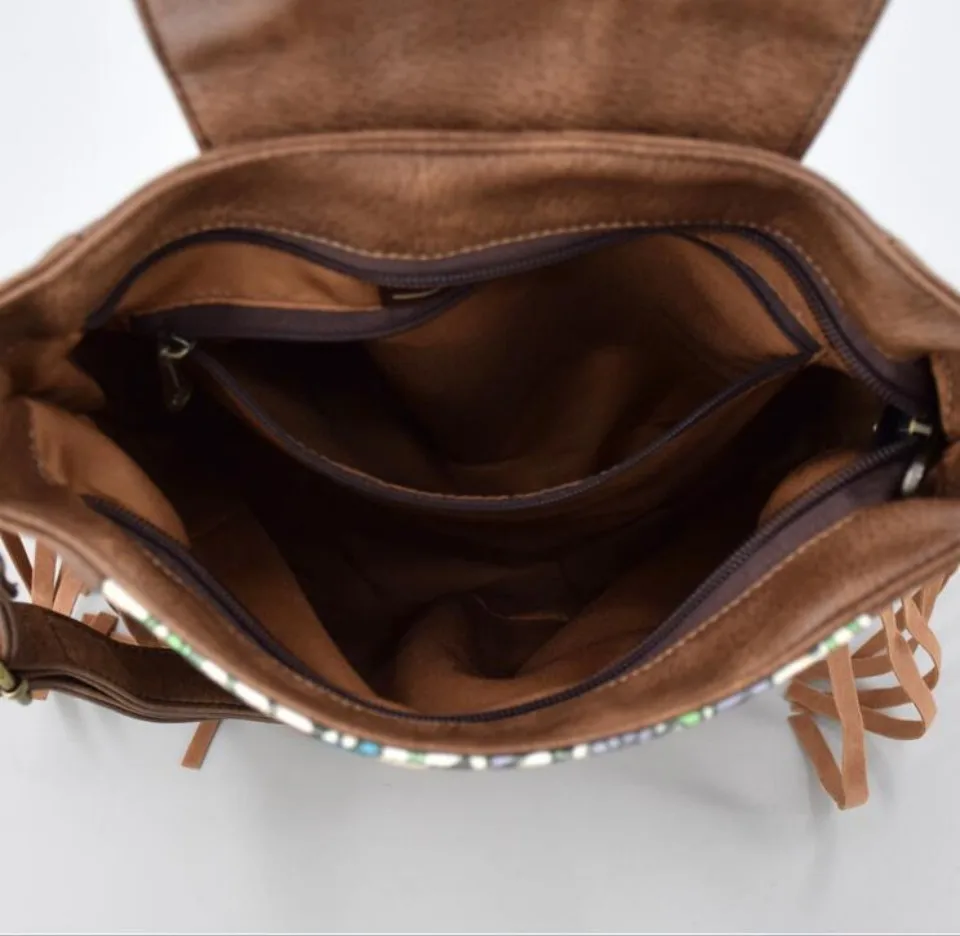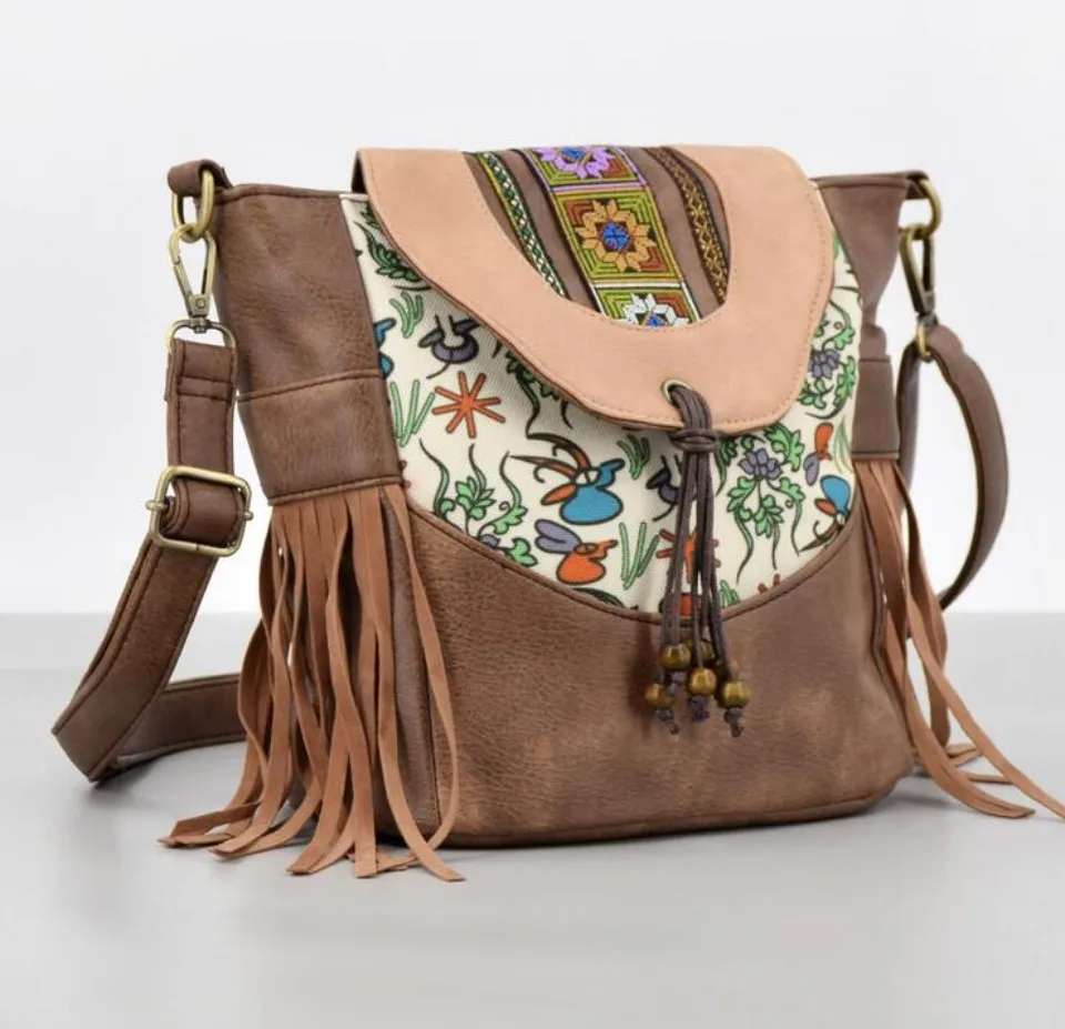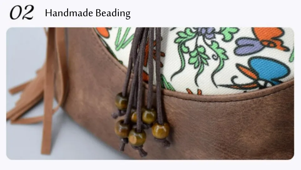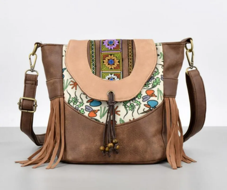 Buy Women Ethnic Style PU Leather Flap Crossbody Bag Tassel Beading Small Shoulder Bag for Girls Daily Cellphone Purse